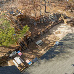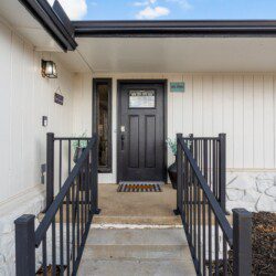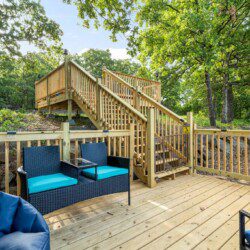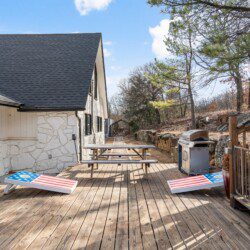 The deck is elevated on all sides, and there are steep drop-offs in front of the home. The driveway is also steep. There are additional steep drop-offs around the property and deck—please use caution. For your safety, please do not sit on the deck railings and please do not climb or walk through the retaining wall areas. Please do not climb the fence. Guests must supervise children at all times to ensure their safety.