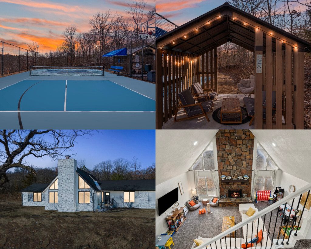 Experience this stunning hilltop oasis near Keystone Lake, featuring a brand-new (2025) regulation-size pickleball court with pro lighting, a basketball area, & endless entertainment—cornhole, jumbo Jenga, arcade games, air hockey, foosball & more!